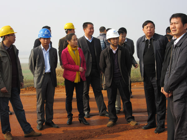 陪同視察的還有南昌市副市長朱志群、進賢縣委書記萬凱、縣委常委鄭響龍、縣水利局局長萬平、縣建設(shè)項目部主任汪劍民及公司副總經(jīng)理曾朝文等。