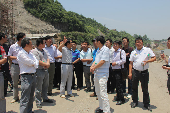 28日,學習組在七一水庫管理局葉局長及項目法人謝局長的陪同下先參觀了大壩施工現場,然后參觀了溢洪道。七一水庫除險加固工程由我公司承建,工程質量多次受到水利部、省水利廳、地方政府領導的好評。在參觀現場,負責該項目施工的項目經理彭燦華就如何抓好工程質量管理問題向大家作了簡要介紹;總工程師吳鐵凡就如何運用施工技術、施工工藝來保證工程質量進行了講解;董事長總經理王元旦用風趣幽默的提問方式,結合施工現場情況,對工程質量管理的五要素“人、機、料、法、環”逐一進行了分析闡述,他指出,人是工程管理的首要因素,也是決定因素,如果人沒有質量意識,根本不可能生產出讓顧客滿意的產品。同時強調,質量是企業的生命,是企業發展的根本保證,在市場競爭十分激烈的今天,如何提高施工質量管理水平是每一位項目經理、每一位管理者必須不斷思考的問題,他要求大家要向七一水庫施工項目部學習,學習他們抓好每道工序,把握每個環節,注重每個細節,踏實做好工程質量的敬業精神,爭取多創優良工程、精品工程,進一步提高公司的市場聲譽。