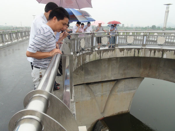 三級抬水壩與人行景觀橋下游面全景