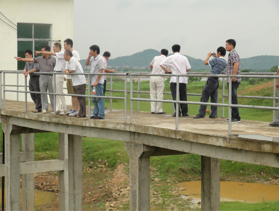 驗(yàn)收工作組成員查看鎮(zhèn)3標(biāo)寺山電排站