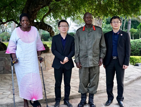 烏干達總統、烏干達駐肯大使與賀翔、李江夏合影