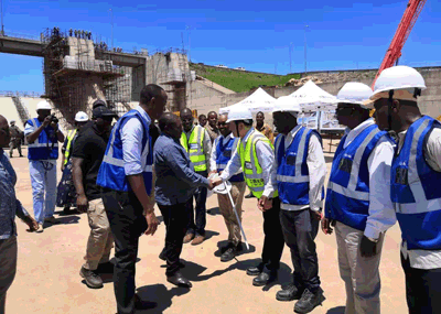 上午10點(diǎn),總統(tǒng)閣下從150km外的首都輕車簡從直抵現(xiàn)場,下車后就直奔溢洪道,視察現(xiàn)場生產(chǎn)情況,并親切接見了我公司董事、海外執(zhí)行董事張周平先生和項(xiàng)目部成員。