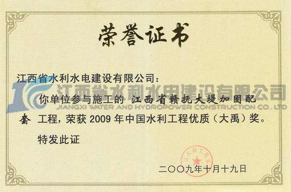 金杯銀杯不如老百姓的口碑。十年來,公司始終以項目管理為核心,以過程控制為主線,以質(zhì)量安全為重點,以品牌形象為抓手,努力鑄造精品工程,滿足社會需要,實現(xiàn)社會價值。十年來,公司共有 12項QC成果,獲省部級獎項;有 7項工法獲得省部級工法,2項科研項目研究獲贛鄱水利科技一等獎;填補了歷史空白,有力的提升了企業(yè)的核心競爭力。十年來,公司承建的贛撫大堤加固配套工程和長江大堤防洪工程榮獲“大禹獎”,數(shù)十個項目榮獲全省水利優(yōu)良工程獎,5個項目被水利部評為文明工地,榮獲水利部首一批安全生產(chǎn)標(biāo)準(zhǔn)化施工企業(yè)和信用等級AAA企業(yè)。