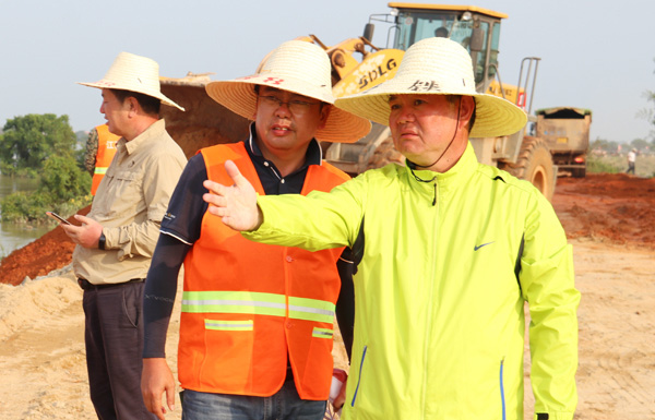 在塊石戧堤施工過程中,公司黨委書記,董事長王元旦同志帶領的專家組頭頂烈日、不辭辛勞、不顧風雨帶領技術組成員日夜堅守封堵一線,要求測量組實時監測決口水位、水深、流速、塊石戧堤有無形變等情況;實時修正戧堤進占軸線;在7月16日晚9時戧堤龍口形成,專家組成員們都在龍口現場指導1m3鋼筋籠、3T砼預制塊的拋投,保證龍口順利合龍。